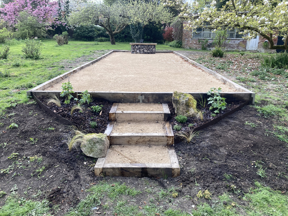 Topped off with some beautiful summer planting, ready for those long summer nights playing Petanque.