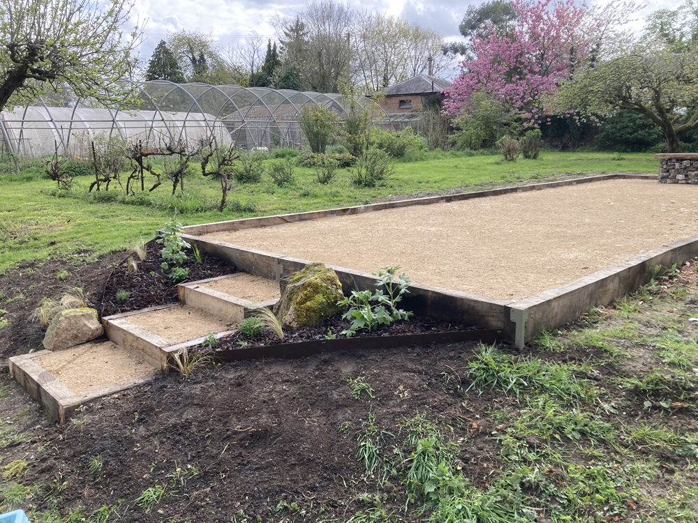 However, this is what we did. Robustly made with Oak sleepers we then compacted layers of Self Binding gravel onto a solid base to create the perfect playing surface.