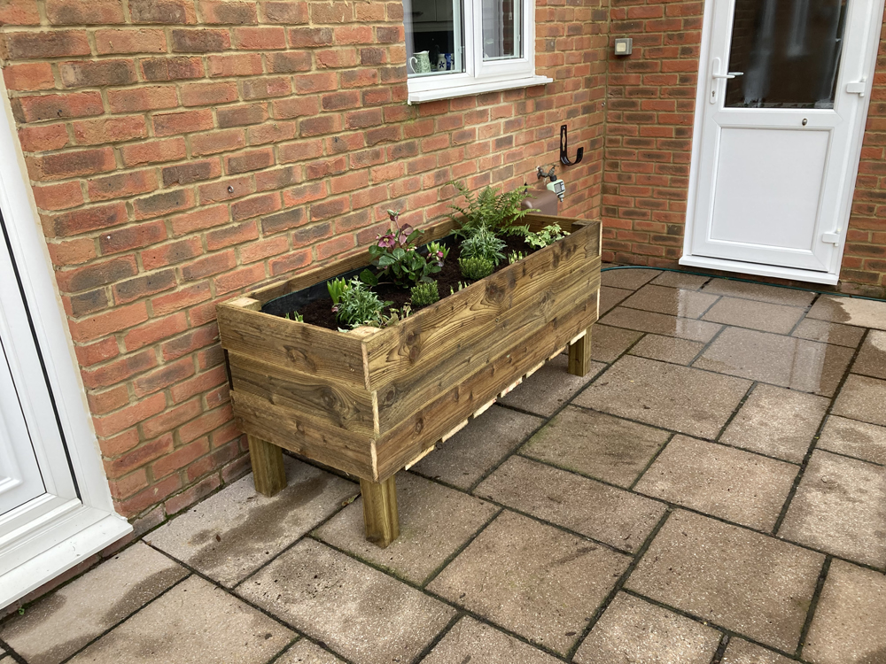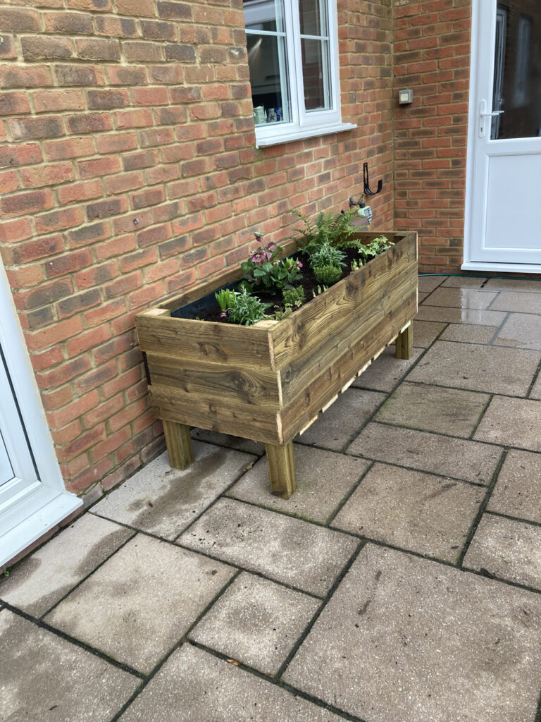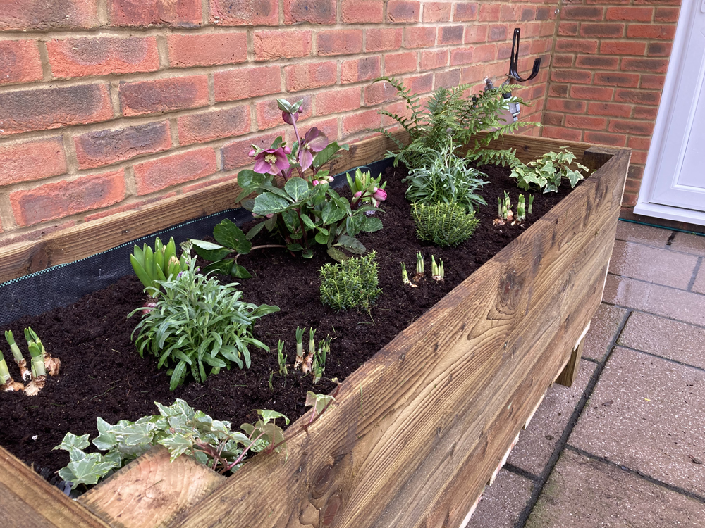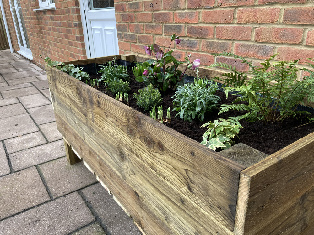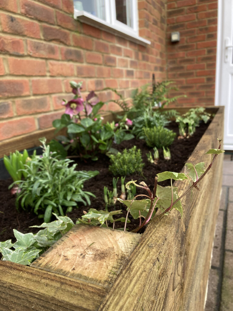 Built to last this rustic planter is now home to some beautiful winter loving plants. Hellebore, Eysimum, Daffodils, Hebe and Ivy, all shine out in the darker, colder months.